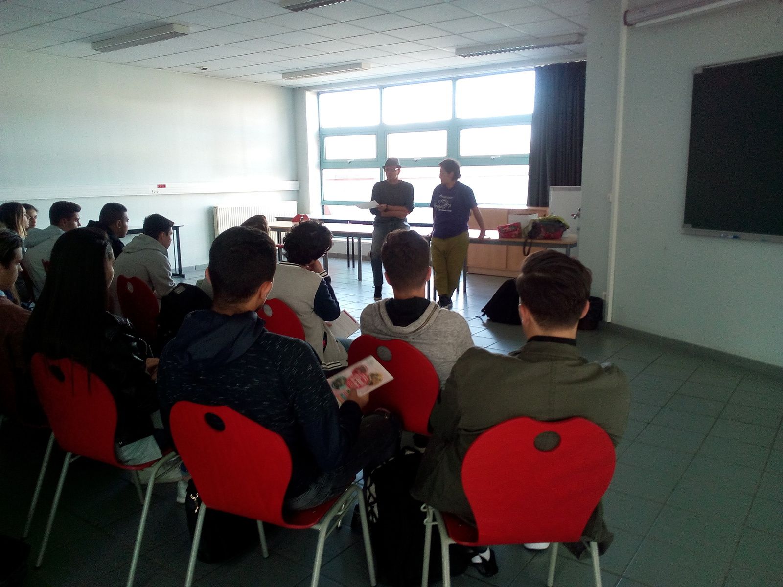 Lundi 12 septembre, Fabrice Vinson et Valérie Vicente, membres de l'association, sont venus présenter aux élèves bénévoles les actions menées par Anges des Eaux Vives ; ce fut aussi l'occasion de régler les dernières modalités pour que l'Envol des Anges de dimanche prochain puisse déployer toutes ses ailes !